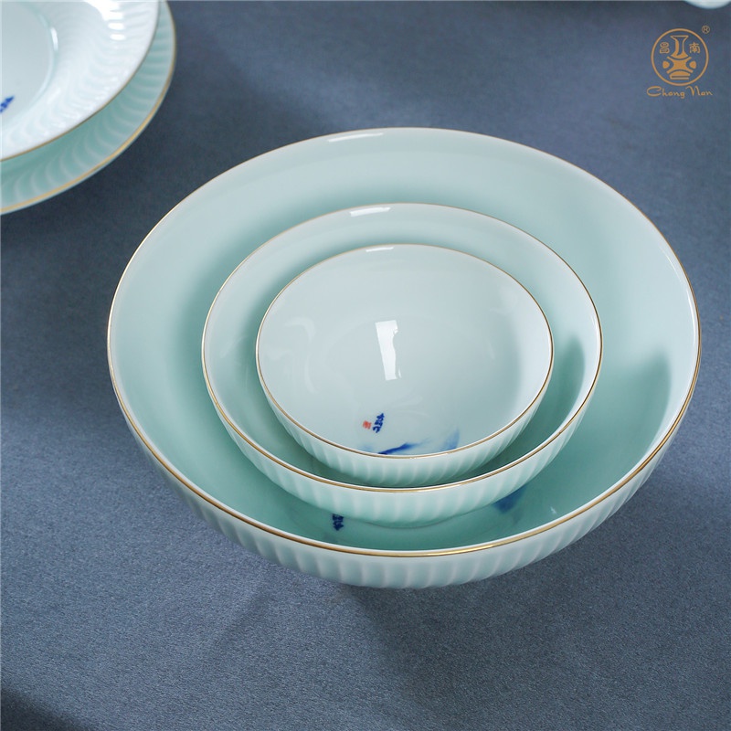 影青描金“年年有余”餐具