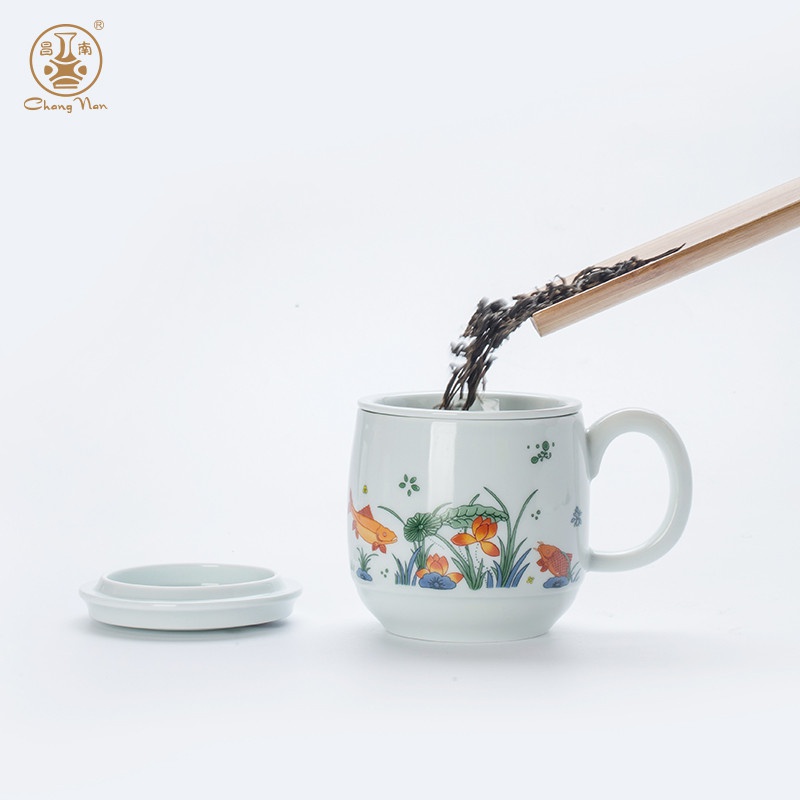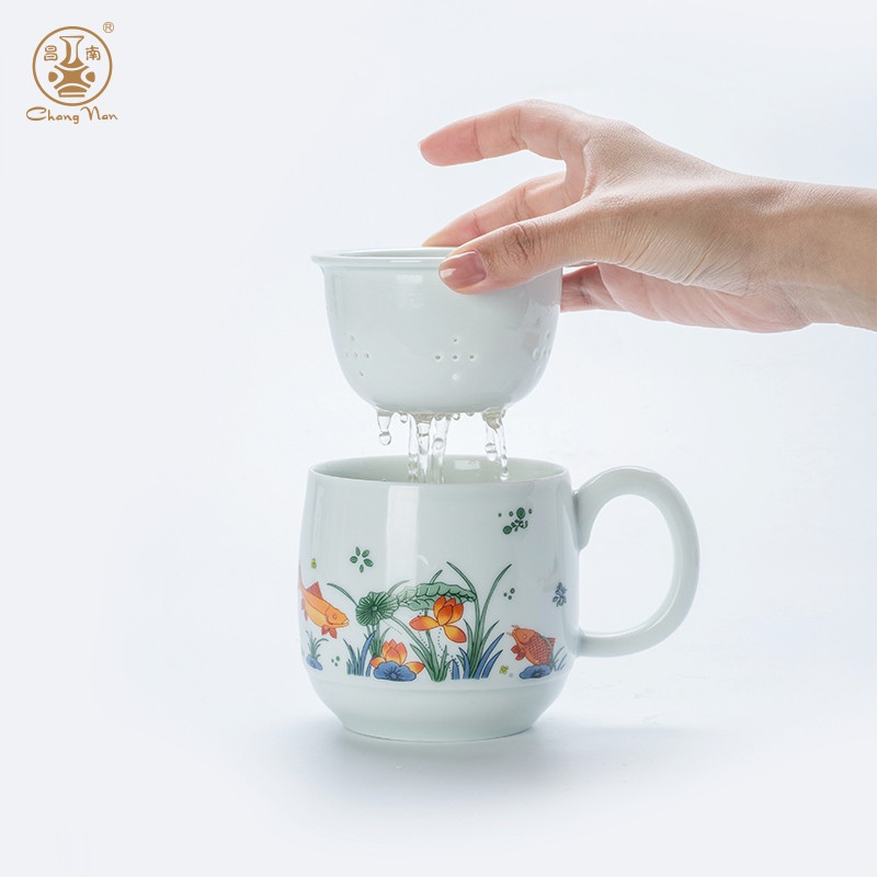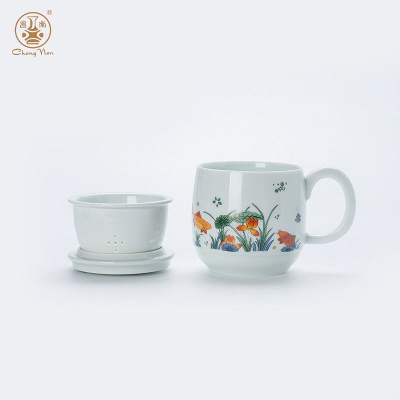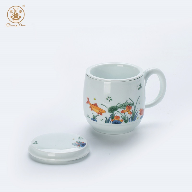 影青“魚戲”辦公杯